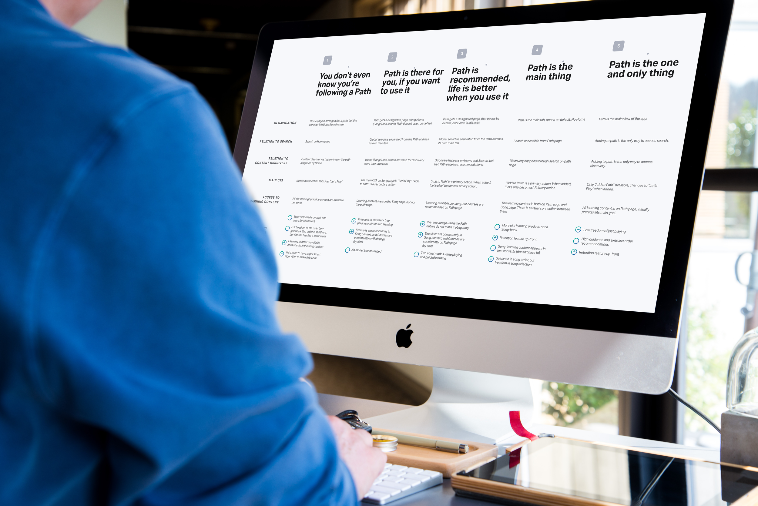 Every week we invited two new beginner guitar players to visit the office and try the new features we were working on at the time. This gave us an opportunity to iterate fast and learn from real potential users (with no internal bias and industry knowledge).