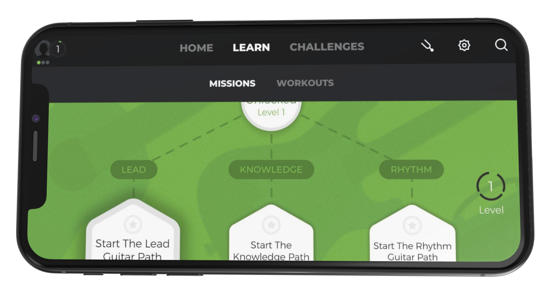 One stream of purposefully arranged lessons indicated a clear journey for the user. Lessons have a clear structure and status: completed, in progress or locked.